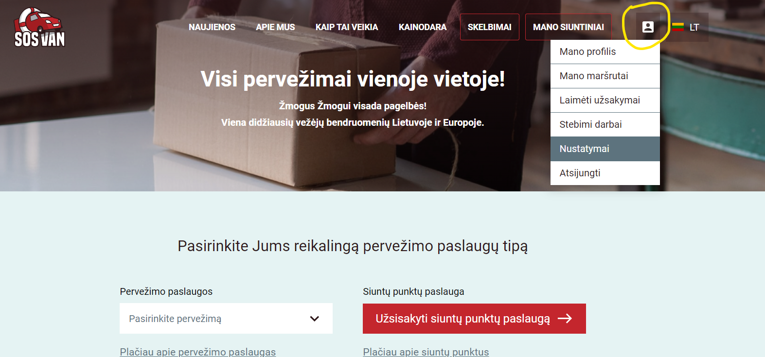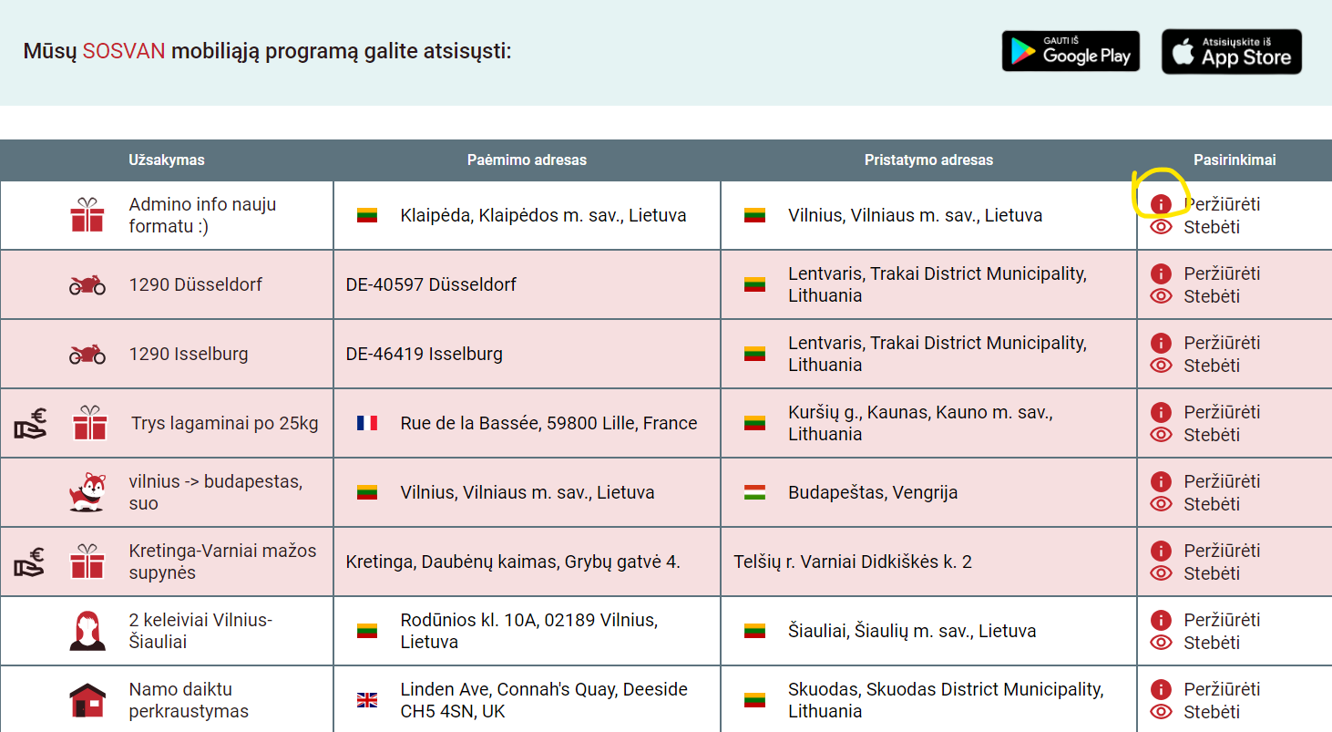 užsakymų. Tik atlikdami pervežimą per „Sosvan“ platformą: